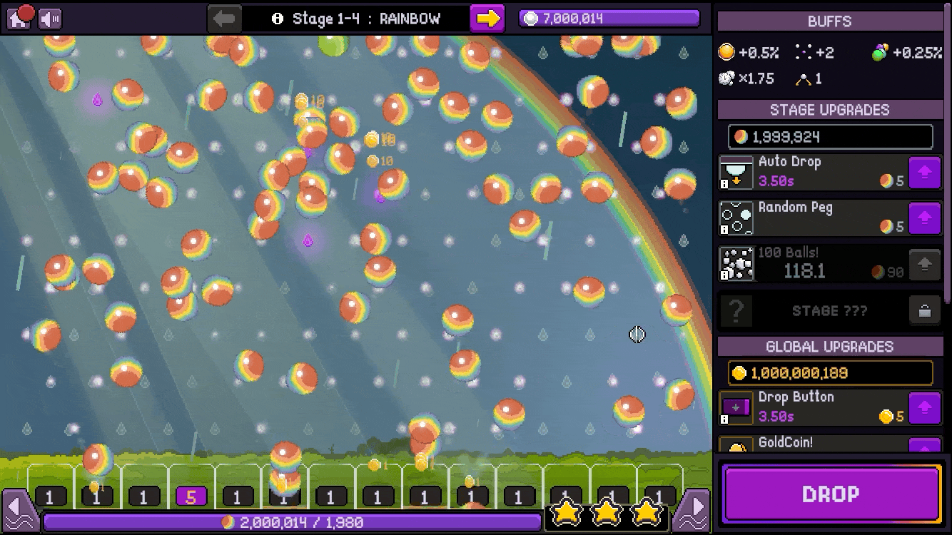 However, increasing a rain of ball drops in a game like Plinko does not lead to fun. The fun of Plinko is rooting for a ball to fall into that one really rewarding bucket.